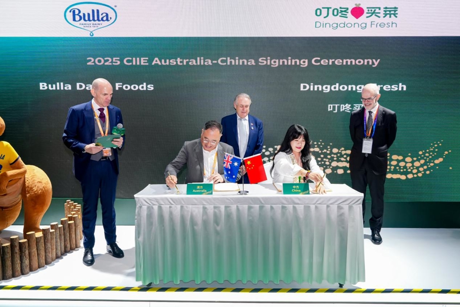 11月6日,叮咚买菜与澳洲知名乳制品品牌Bulla在进博会上签订了直采协议,约定将于明年采购至少500万元的乳制品商品。“今年夏天,叮咚买菜尝试引入Bulla数款经典的冰淇淋和酸奶产品,一上架就成为平台的热销款。”叮咚买菜相关负责人表示,在本届进博会上,双方洽谈升级了直采模式,未来可以用更高效的链路,通过线上平台为国内消费者带来原汁原味的澳大利亚奶源乳制品。