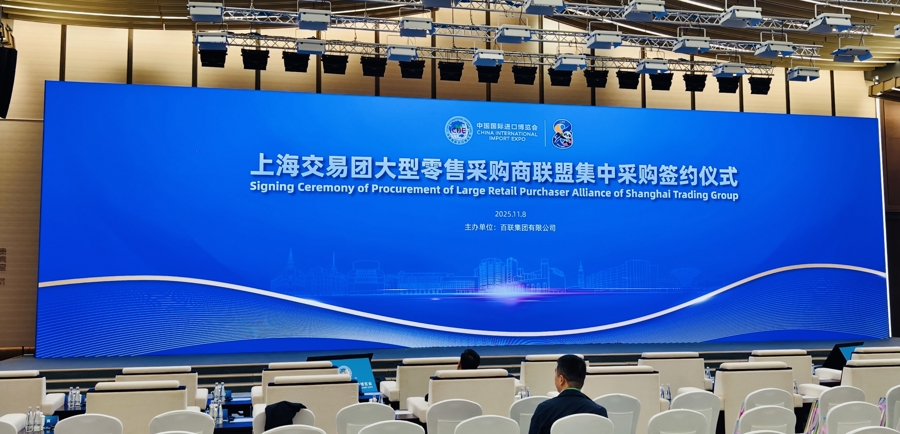 今天上午,作为第八届进博会配套现场活动,由百联集团主办的上海交易团大型零售采购商联盟集中采购签约仪式在国家会展中心(上海)举办。百联集团携大型零售采购商联盟成员企业与来自美洲、欧洲、大洋洲、亚洲等国家和地区的厂商及品牌商代表进行集中签约,采购涵盖食品家居、美妆个护、医疗器械等多个民生领域。